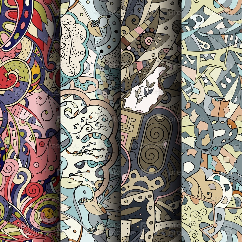 Набор ажурных красочных бесшовных узоров