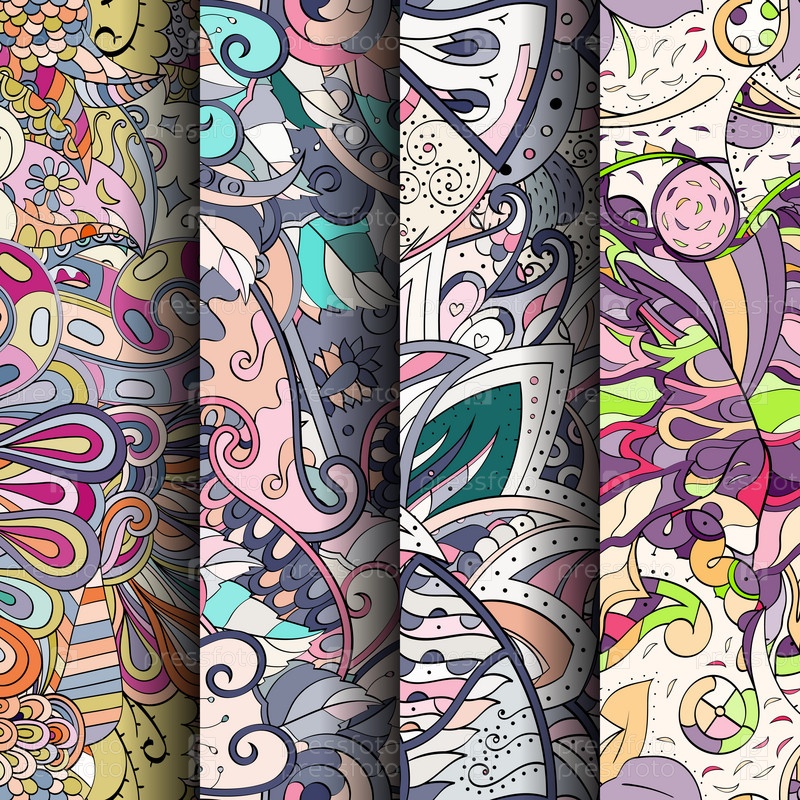 Набор ажурных красочных бесшовных узоров