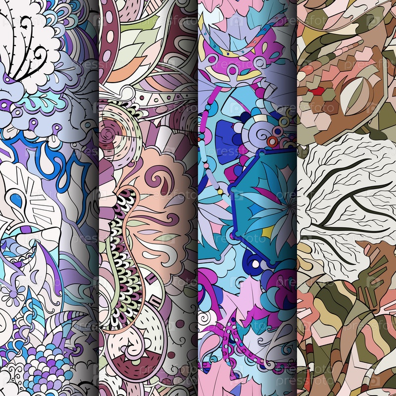 Набор ажурных красочных бесшовных узоров