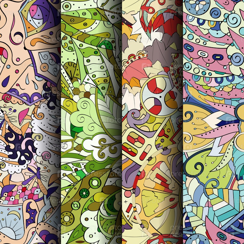 Набор ажурных красочных бесшовных узоров