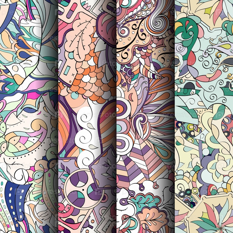 Набор ажурных красочных бесшовных узоров
