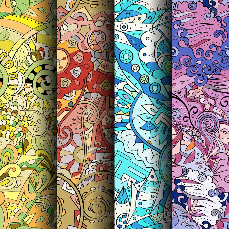 Набор ажурных красочных бесшовных узоров