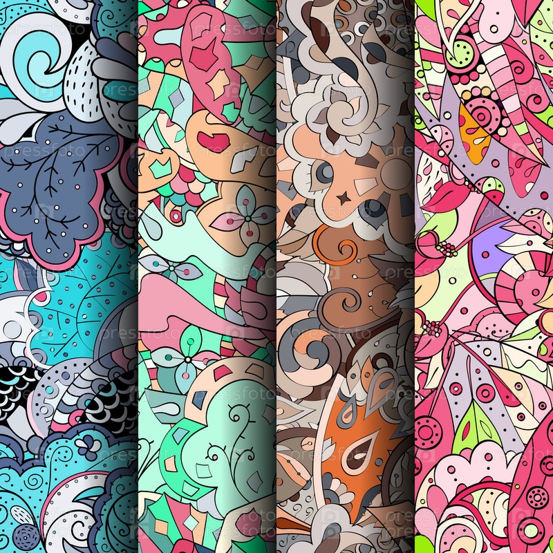 Набор ажурных красочных бесшовных узоров