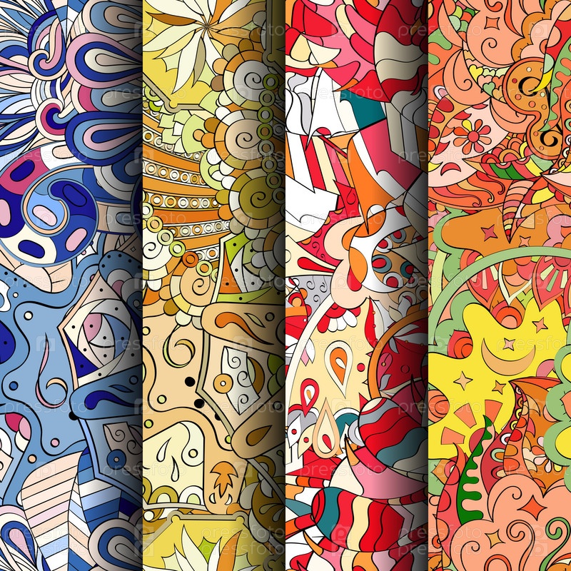 Набор ажурных красочных бесшовных узоров
