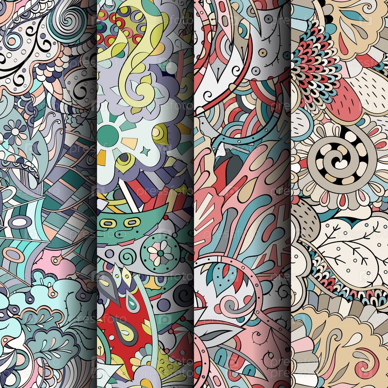 Набор ажурных красочных бесшовных узоров