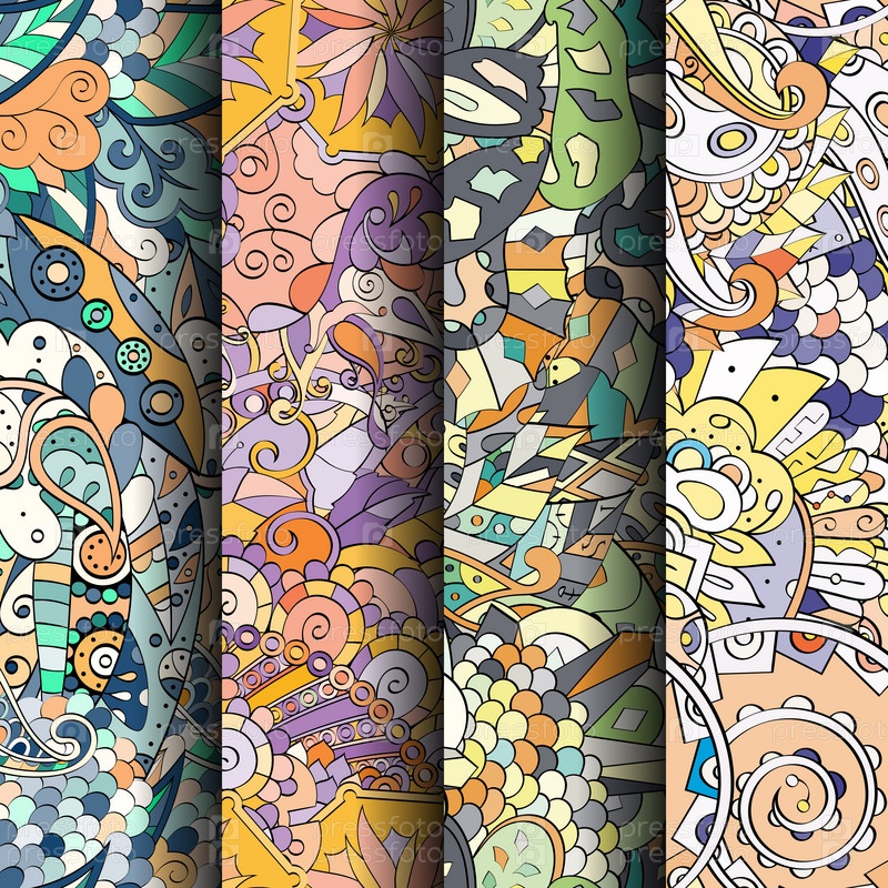 Набор ажурных красочных бесшовных узоров