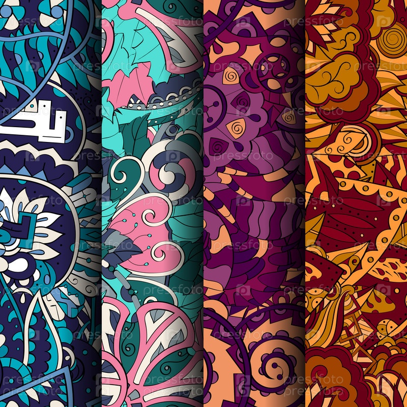 Набор ажурных красочных бесшовных узоров