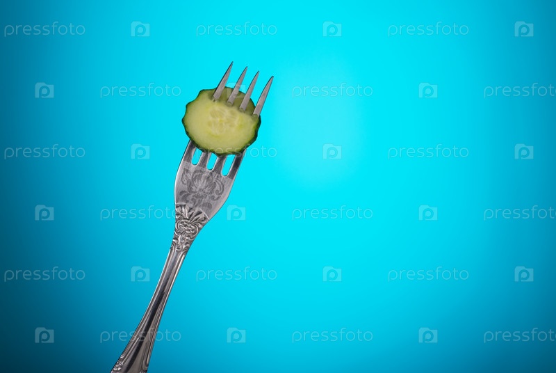 Вилка с кусочком огурца