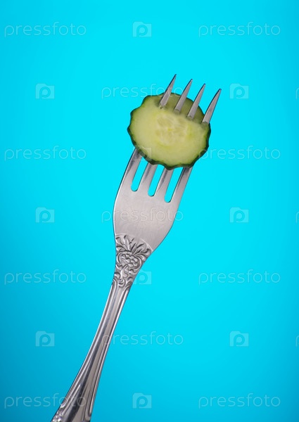 Вилка с кусочком огурца