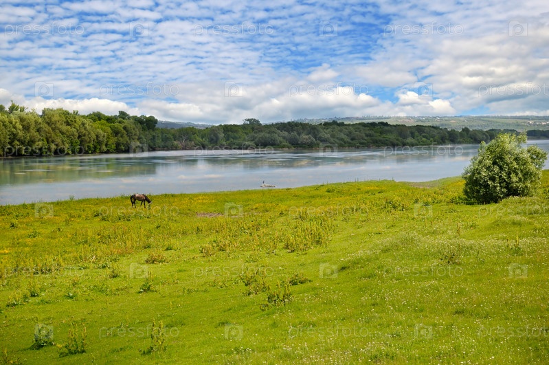 Река, луг и пойменные леса на берегу