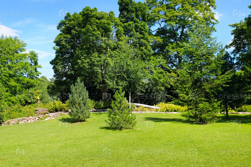 Парк, зеленый луг и небо
