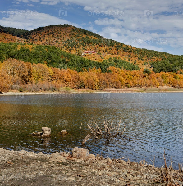 Живописный вид на горное озеро Фенеос (гора Коринтия, Греция)