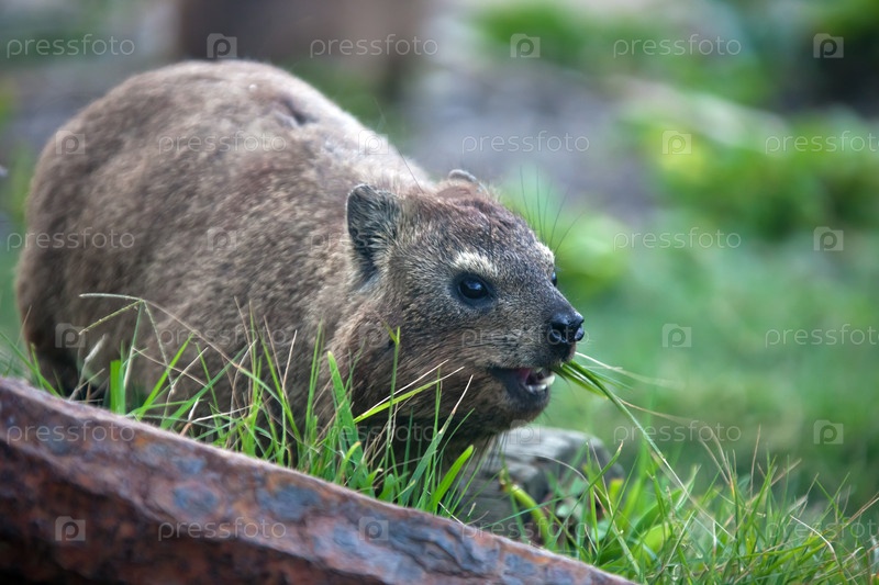 Капский даман ест траву