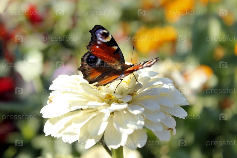 Бабочка сидит на белом цветке