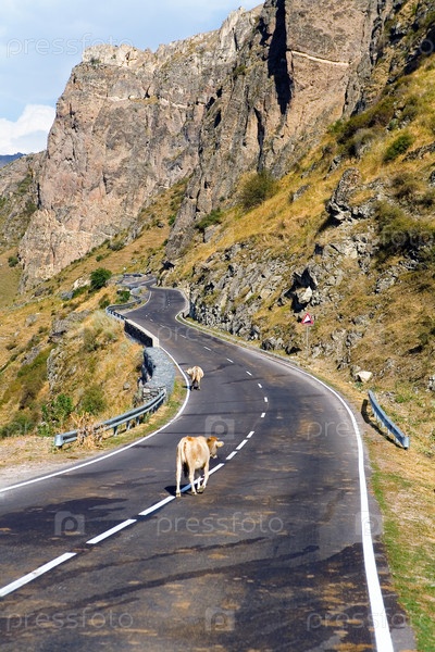 Коровы идут по горной дороге