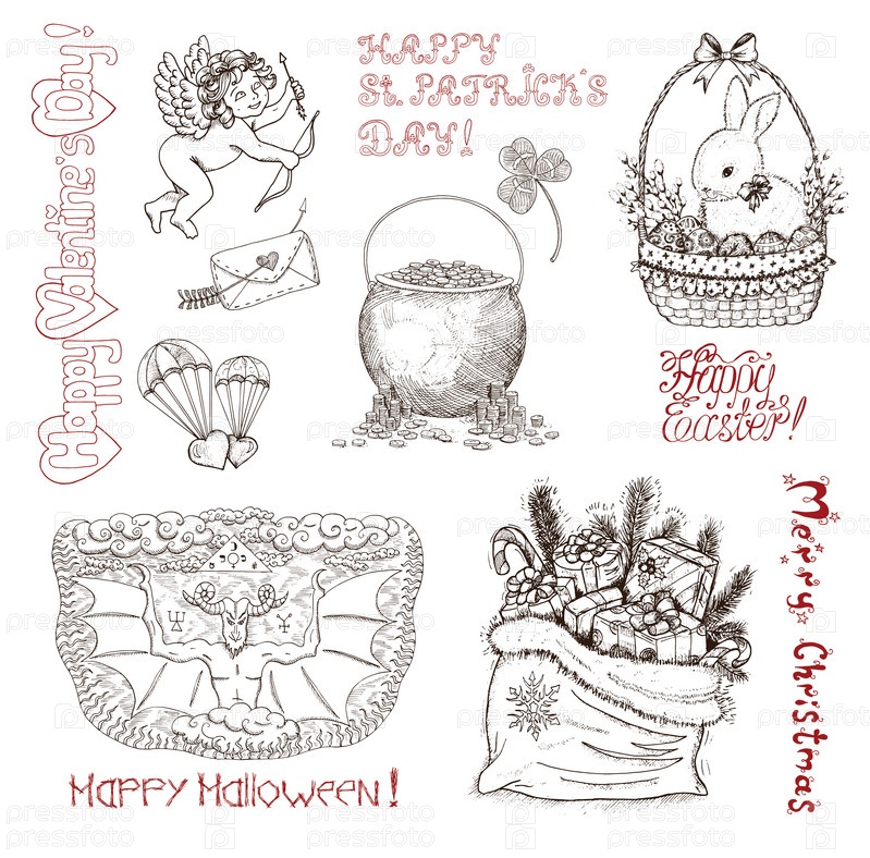 Рисованный винтажный набор для праздников