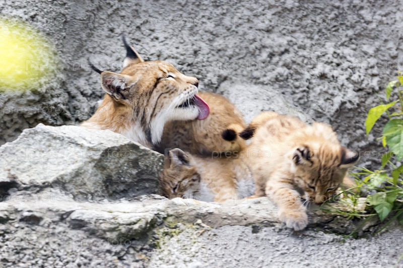 Самка северной рыси с выводком