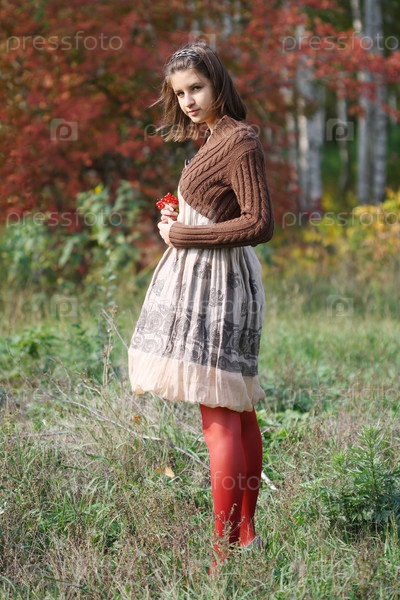 Красивая девушка на фоне осенних деревьев