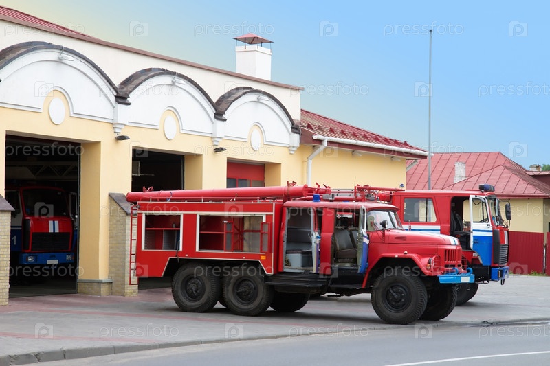 Старая пожарная машина возле пожарной станции
