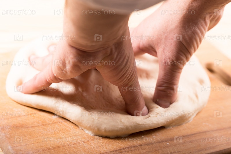 Пекарь делает тесто для хлеба