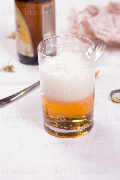 Стакан с пивом на столе