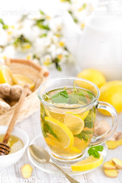 Травяной чай со свежим лимоном, имбирем и листьями мяты