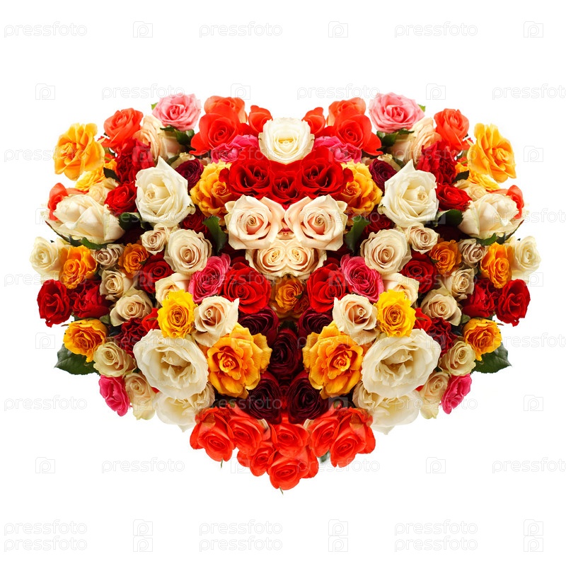 Букет роз в форме сердца на белом фоне