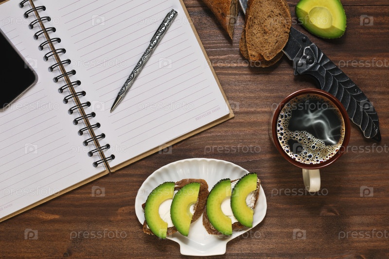 Кофе и бутерброды с авокадо