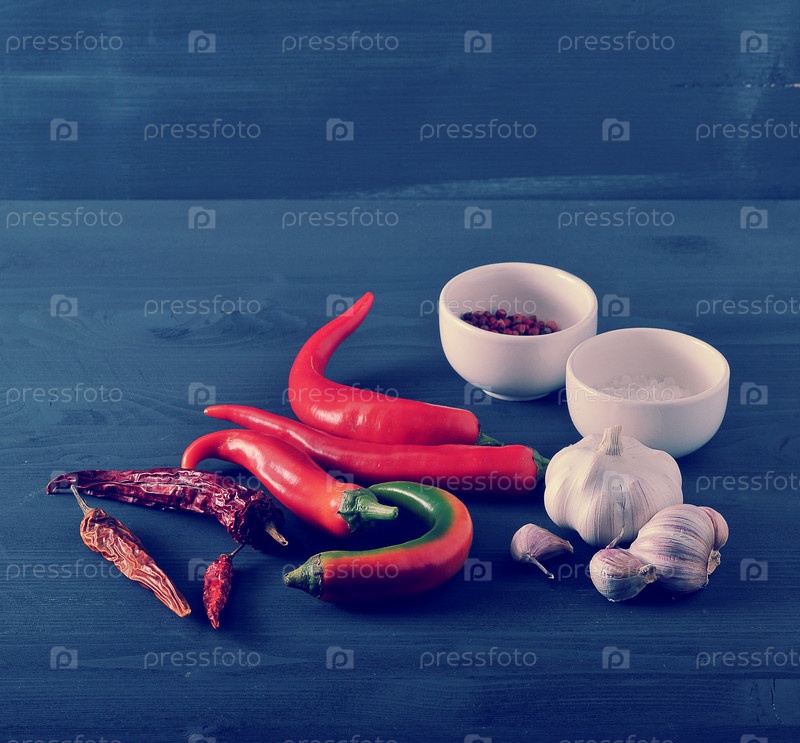 Чили, чеснок, соль и специи