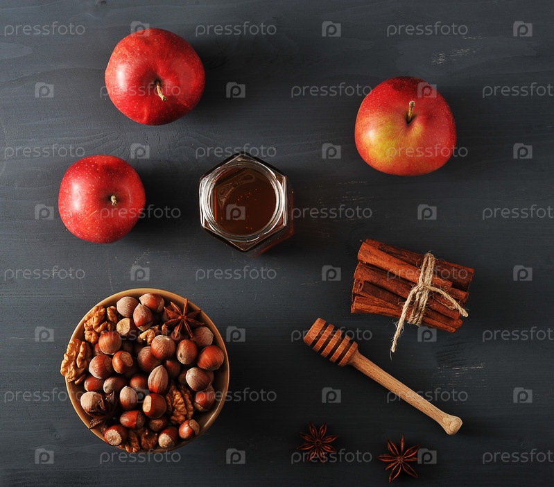 Яблоки, мед, орехи