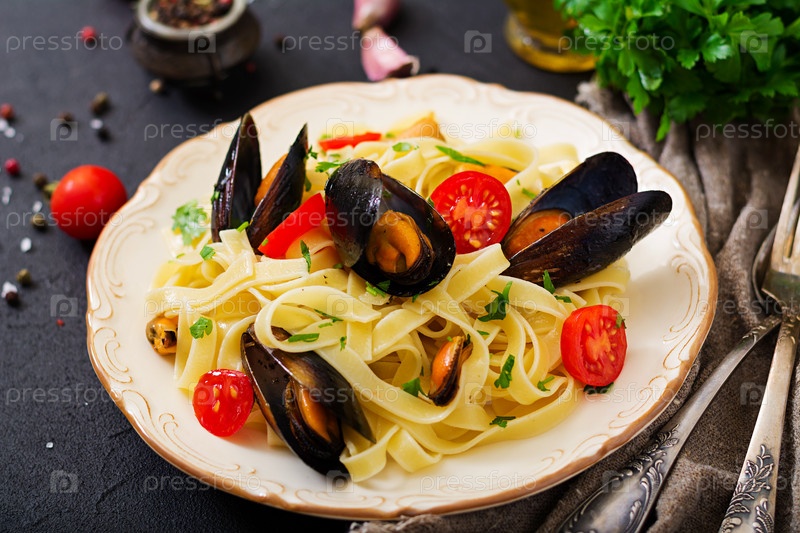 Феттучини паста с мидиями