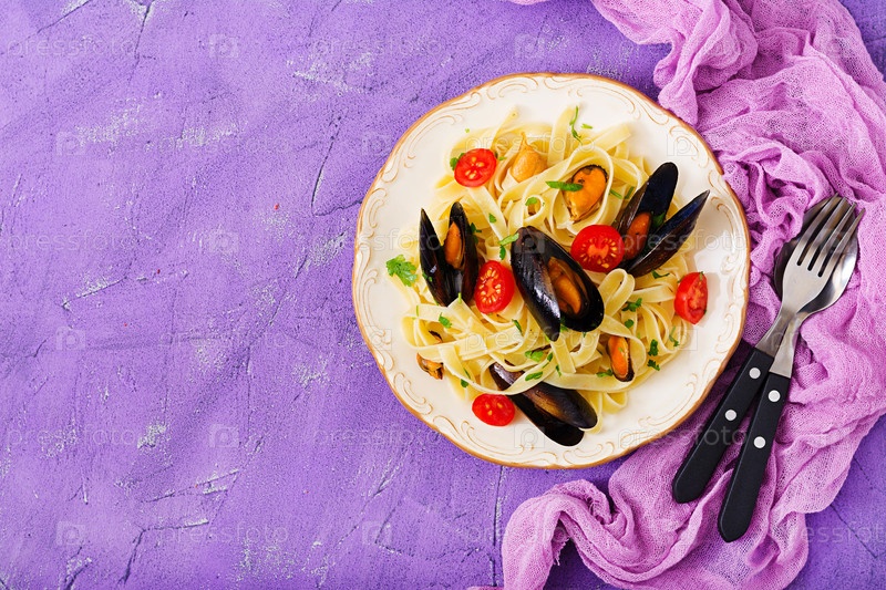 Феттучини паста с мидиями