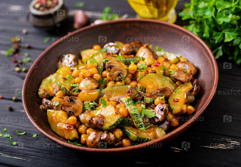 Жареные грибы с кабачками и нутом