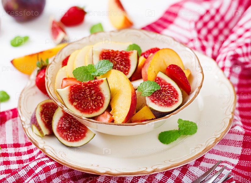 Веганский салат с инжиром, персиками, грушами и клубникой