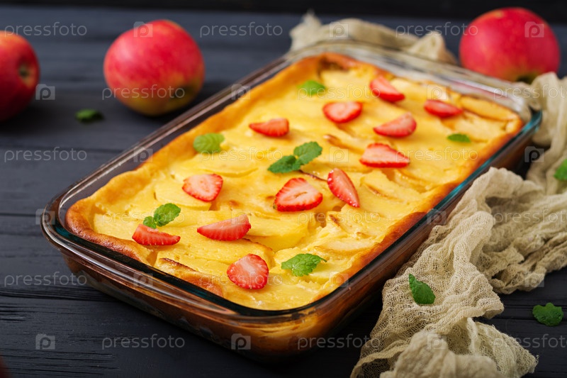 Аппетитная творожная запеканка с яблоками