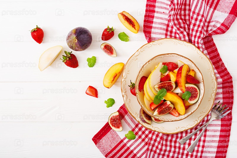 Веганский салат с инжиром, персиками, грушами и клубникой