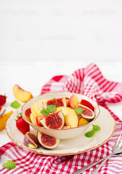 Веганский салат с инжиром, персиками, грушами и клубникой