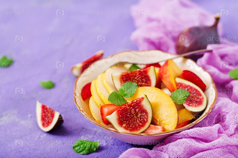 Веганский салат с инжиром, персиками, грушами и клубникой