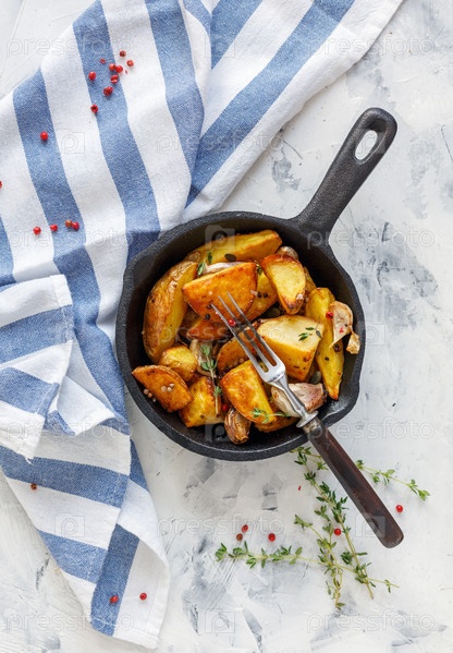 Печеный картофель с чесноком и свежим тимьяном