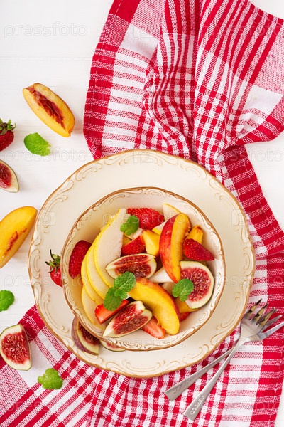 Салат с инжиром, персиками, грушами и клубникой