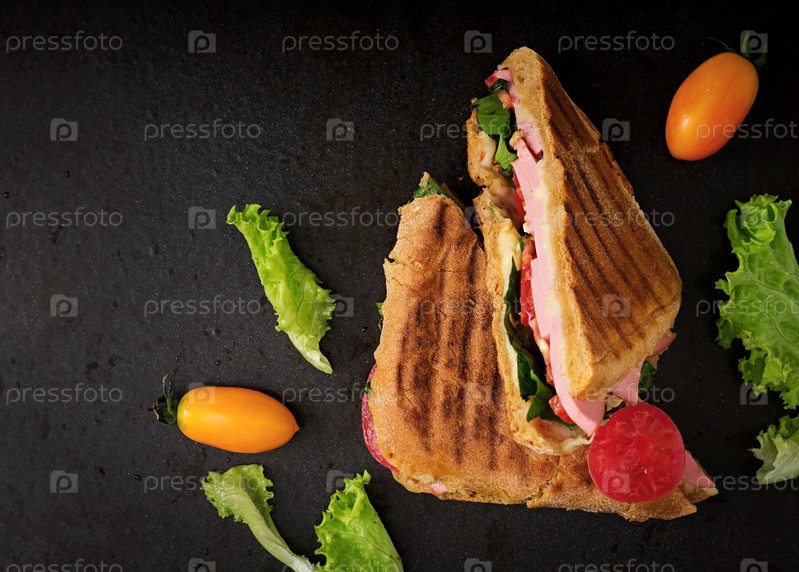 Панини с ветчиной, помидорами, сыром и салатом