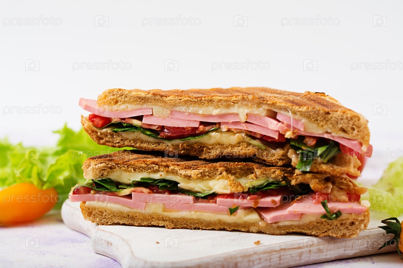 Панини с ветчиной, помидорами, сыром и салатом