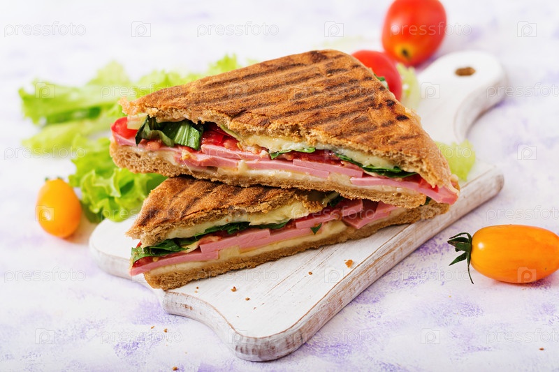 Панини с ветчиной, помидорами, сыром и салатом