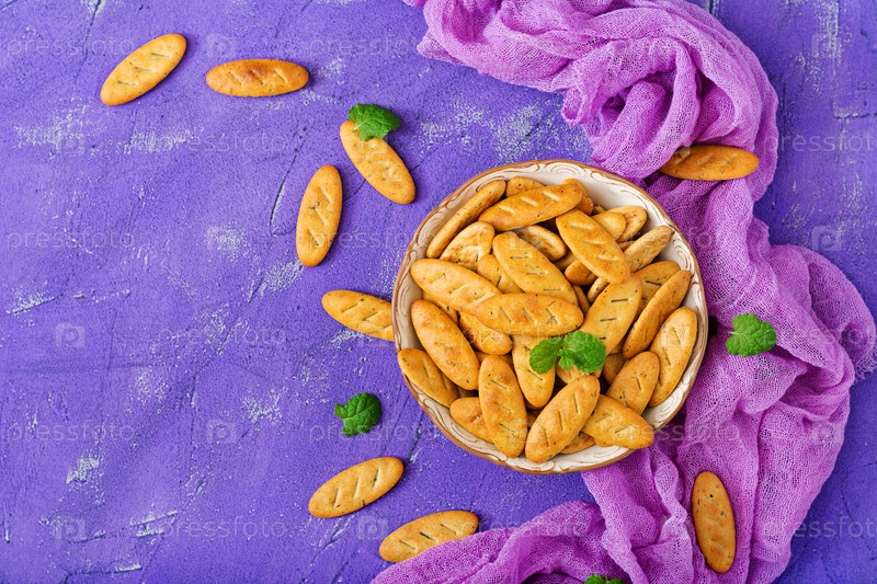 Печенье в миске на фиолетовом фоне
