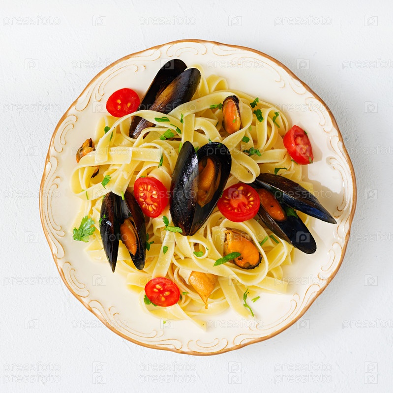Феттучини макароны с мидиями