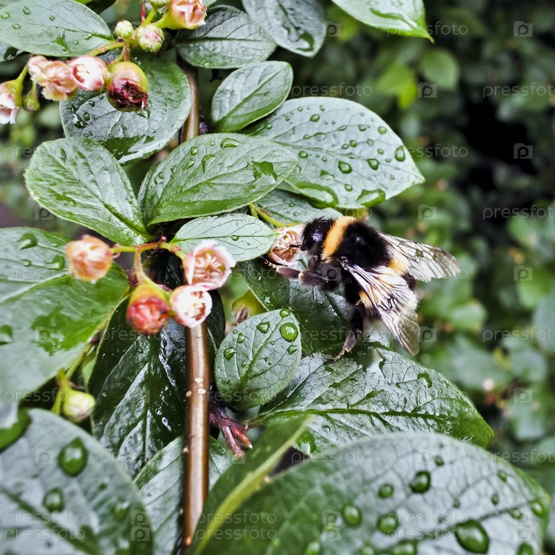 Шмель собирает нектар после дождя