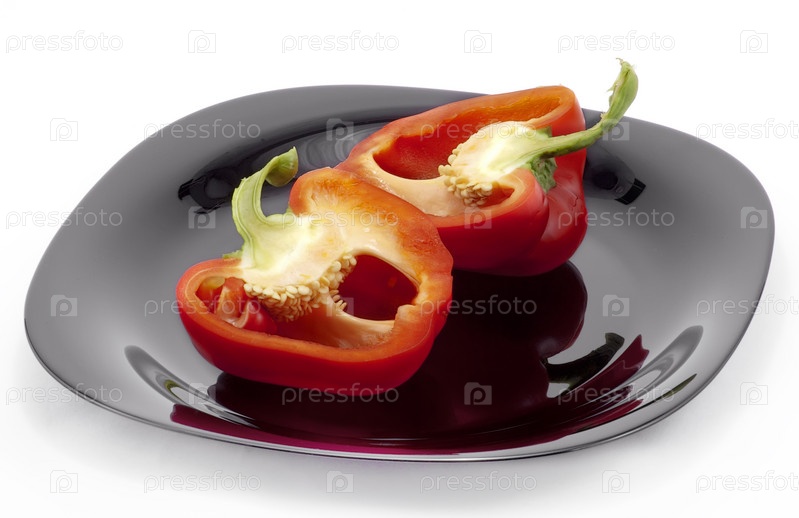 Разрезанные перцы на тарелке на белом фоне