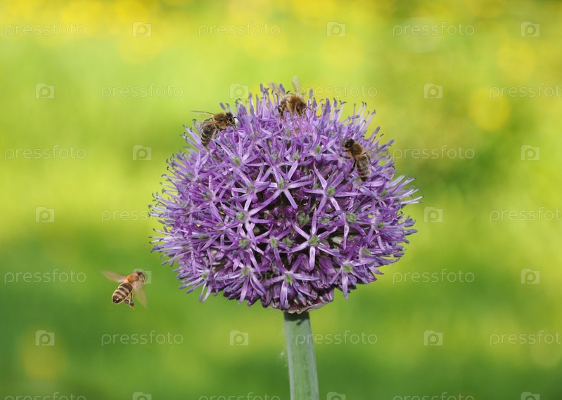 Пчелы, сидящие на цветках лука