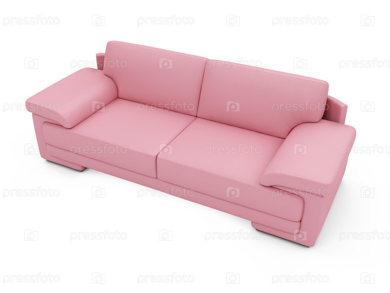 Розовый диван на белом фоне