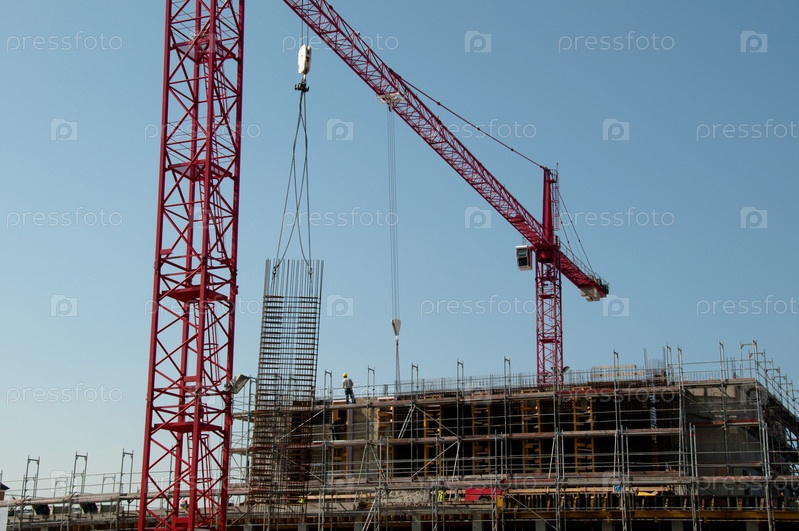 Красный строительный кран